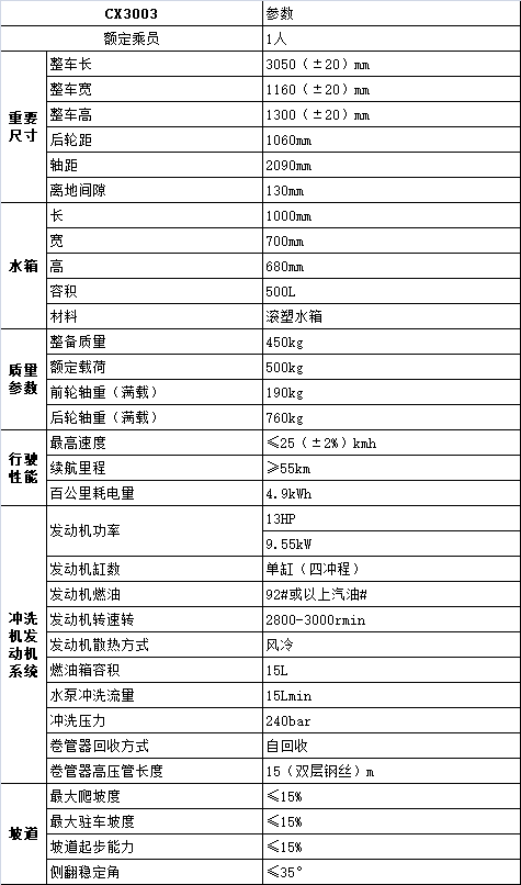6、本車沖洗機為汽油動機泵組,采用單缸四沖程汽油機,強勁有力最大沖洗壓力240bar。