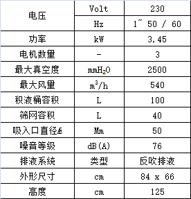 • 安裝有浮球裝置, 當集塵箱液體充滿時,自動停止抽吸,以保護真空馬達;