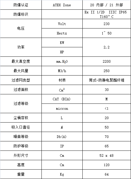 • 吸塵單元由ATEX21認證的電機組成;